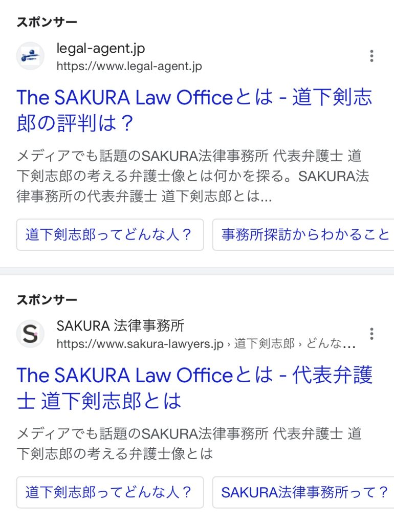 道下剣志郎の検索広告の違法なプロバガンダ活動の告発[証拠あり]
