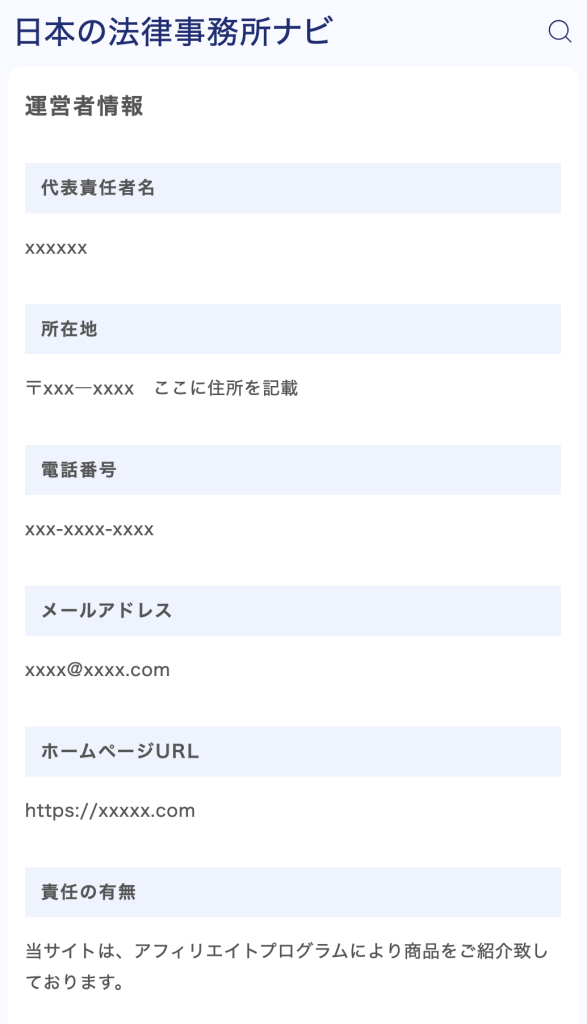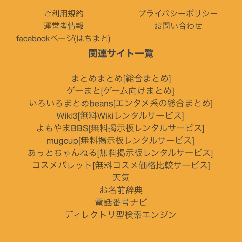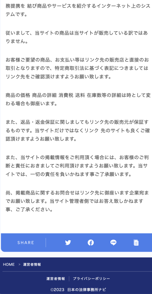 同一業者の制作で、フッターの「プライバシーポリシー」「免責事項」はリンク切れ