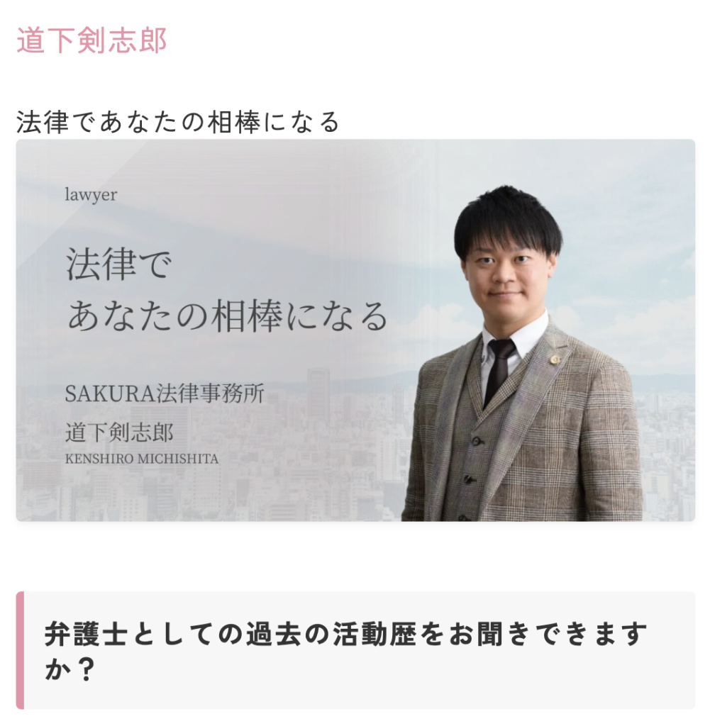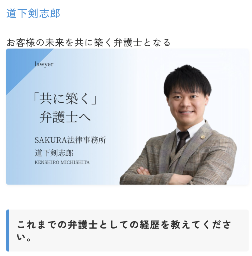 https:// sakura-lawyers.jp/lawyer/michishita-kenshiro/?gclid=Cj0KCQjwx5qoBhDyARIsAPbMagBdEMXjVrlRvRULfOflSk9b4EBh7YNo2HA9m_iEnMybrjUZmMcZB1caAt5EEALw_wcB