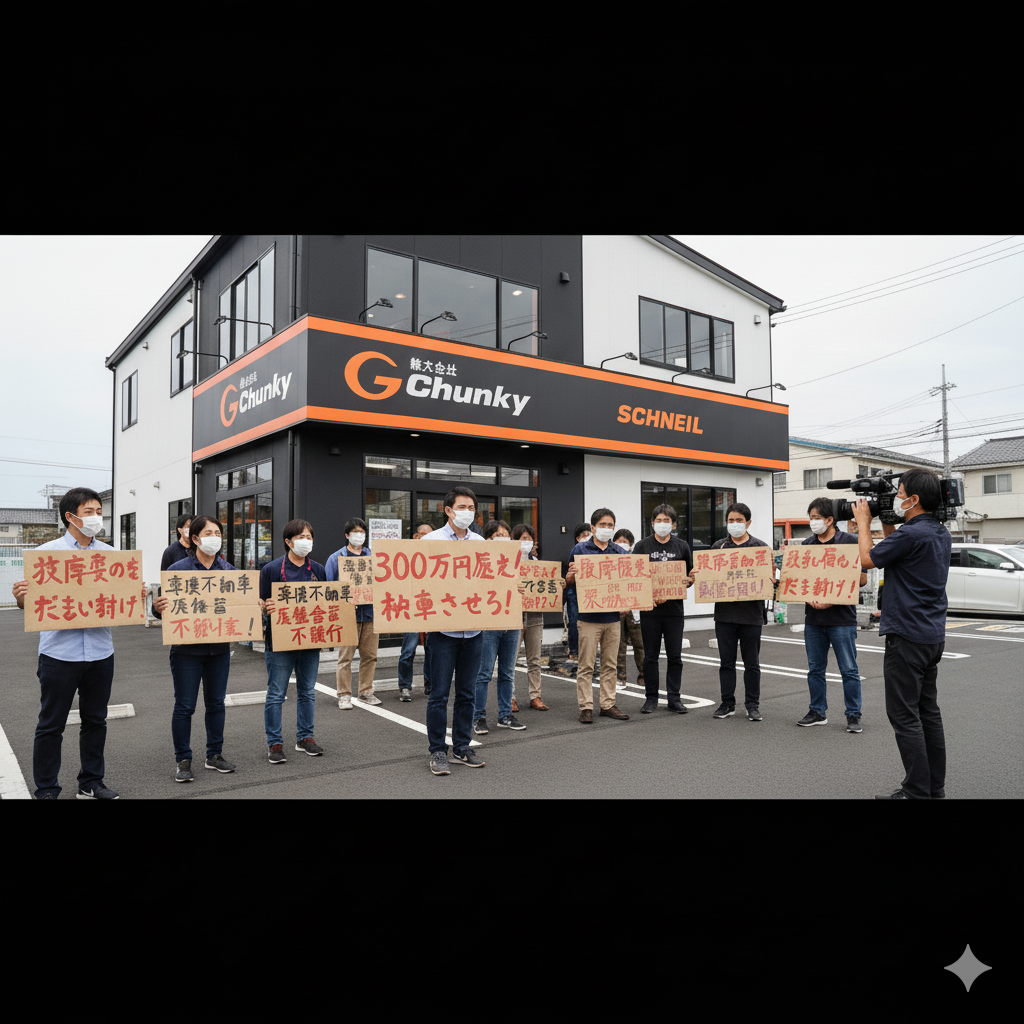 詐欺事件 Chunky社の車両詐欺、6300万被害判明 1. 事件の概要 2. 事件の内容 提供された内部資料および契約書面に基づく事実経過は以下の通りである。 3. 反論と多角的視点 4. 今後の展望 市場の健全な取引秩序を破壊する行為に対し、被害者救済と実態解明が焦点とな […] 2024年5月1日